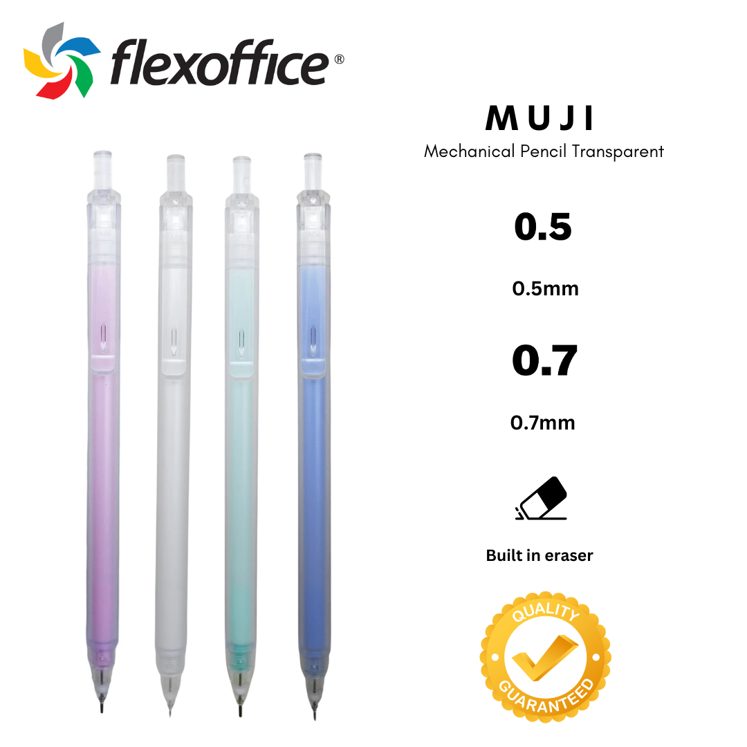 FlexOffice Japan Muji Mechanical Pencil 0.5mm/0.7mm Student Use Transparent Penholder Exam Pen Mechanical Pencil PC-034: Durable, reliable quality. Color: White/Pink/Blue/Green   ? Modern Design: Features sharp, refined details. ? Fine Writing: Delivers precise, slender lines. ? 0.5mm Lead: Id ...Read more