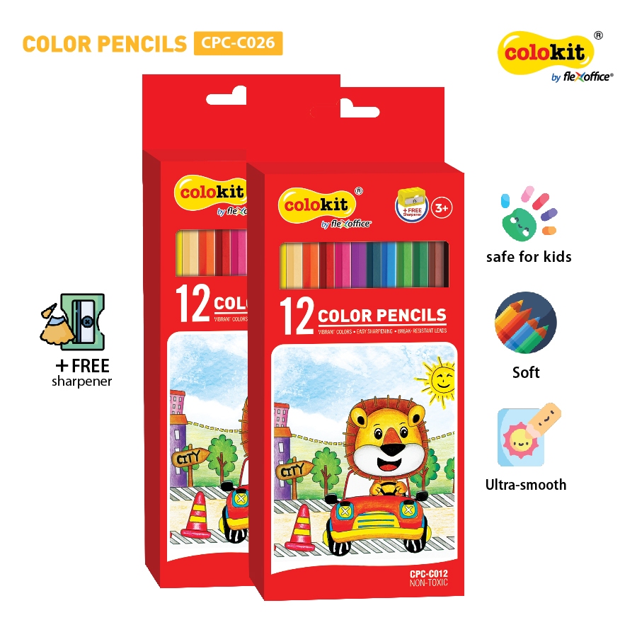 Pensel Warna (Set of 12 Colours) Colouring Pencils – Smooth Colour Pencils for Kids & Student Use by Flexoffice
