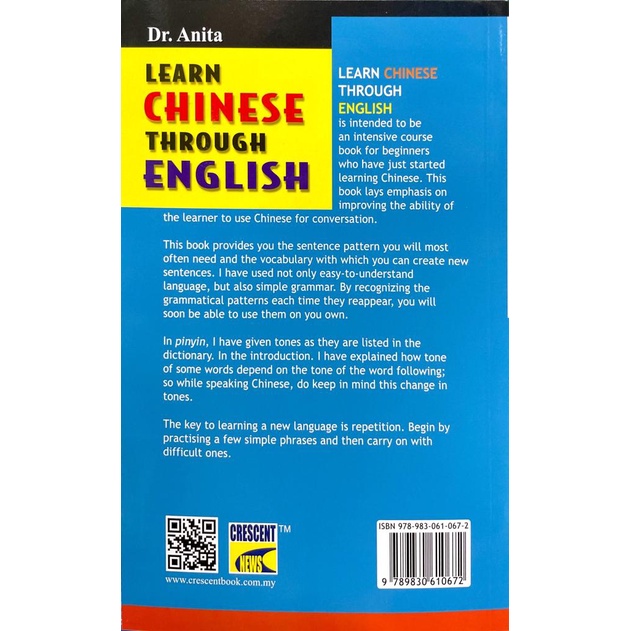 LEARN CHINESE THROUGH ENGLISH is intended to be an intensive course book for beginners who have just started learning Chinese. This book lays emphasis on improving the ability of the learner to use Chinese for conversation.