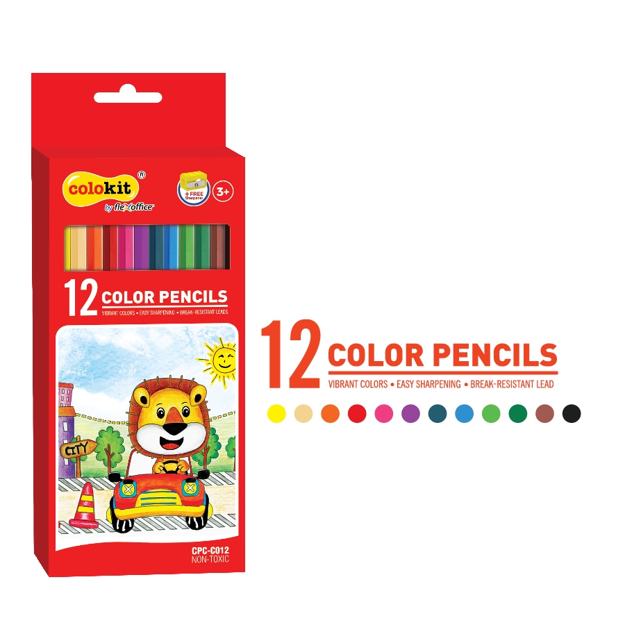 Pensel Warna (Set of 12 Colours) Colouring Pencils – Smooth Colour Pencils for Kids & Student Use by Flexoffice