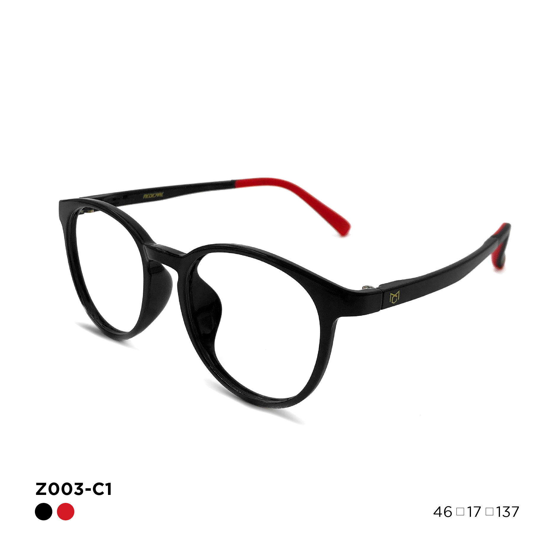 Kid's Medicare Lifestyle Glasses with zero-powered Essilor France Branded Blue Filter Protection with light & comfortable frame, for kids daily use when kids face digital devices like computer, table or smart phone. Medicare kids glasses is able to block harmful blue light, reduce digital eye strain and giving children the most optimum eye protection. Comes along with a cute a multi-purpose glasses casing. SIZE 46-17-137