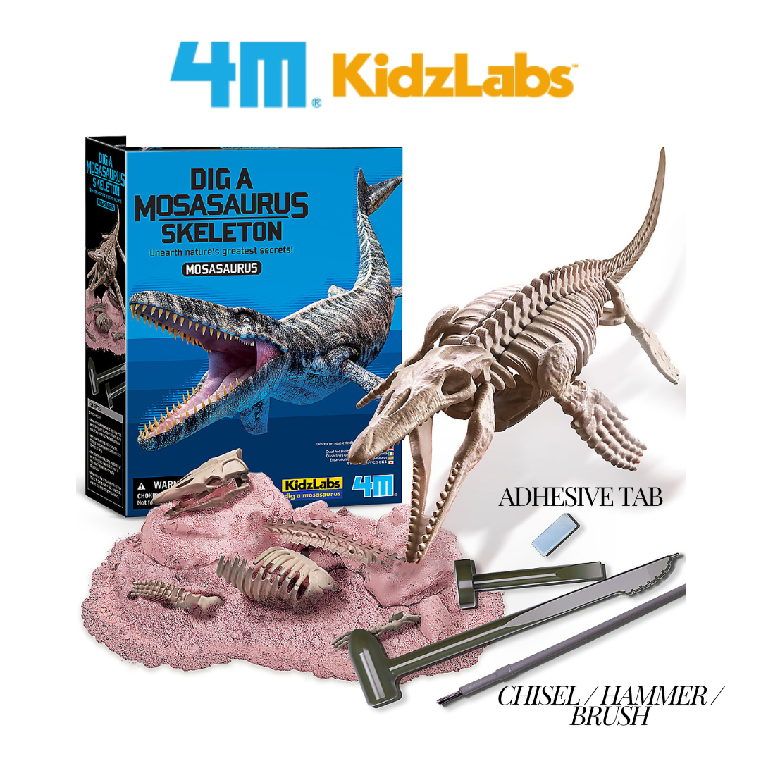 Play at being a top paleontologist by excavating the bones of a reptile that swam in the oceans millions of years ago with 4M Steam Education Toys - Dig a Mosasaurus Skeleton.